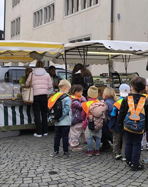 Wir waren heute auf dem Rapperswiler Freitagsmarkt. Jedes Kind hat sein eigenes Portemonnaie gefaltet und bekam einen 2 Fränkler, um sich etwas auf dem Markt zu "poschten".