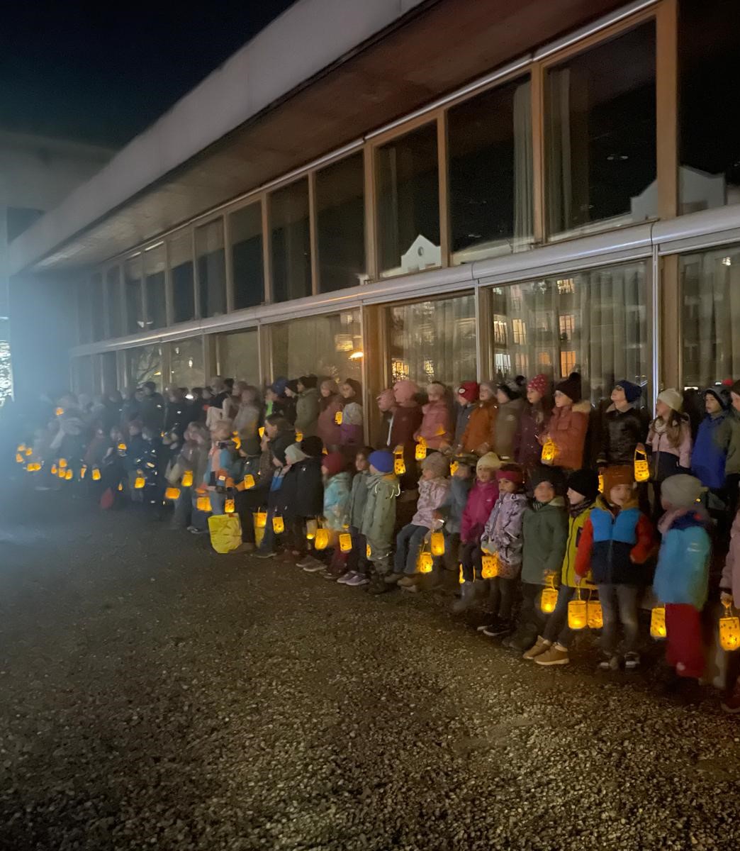 Die Kindergärten und 1. Klassen der PS Weiden erleuchten mit ihren Laternen die dunkle Novemberzeit.