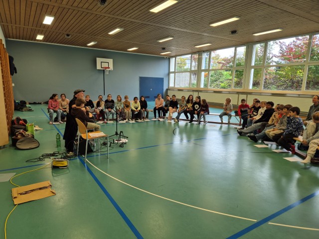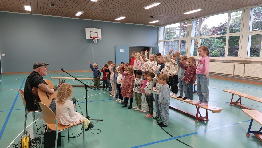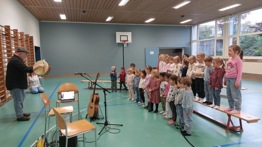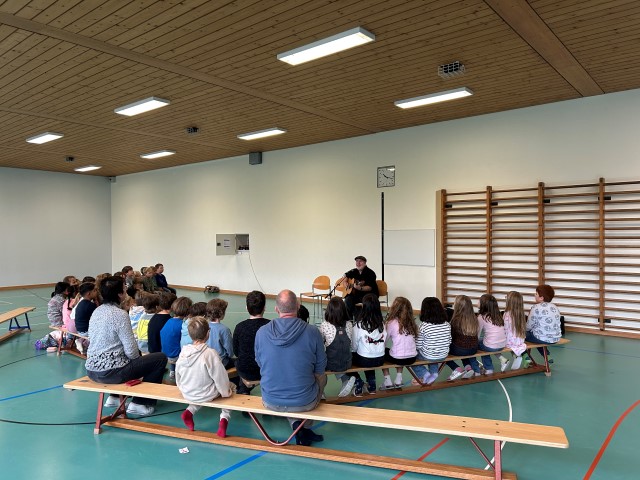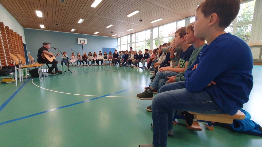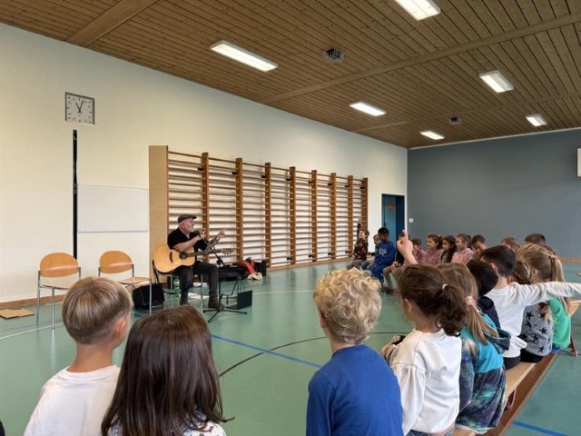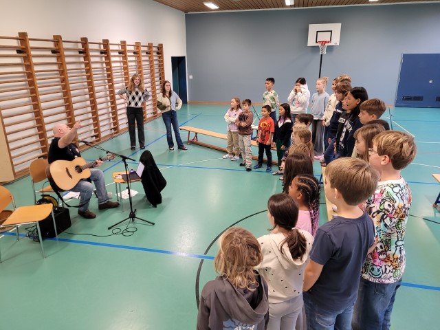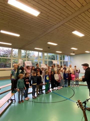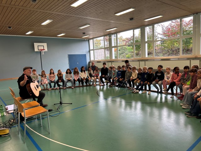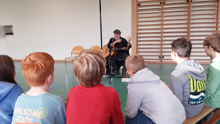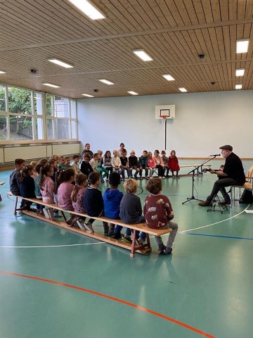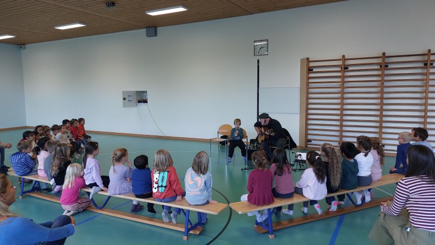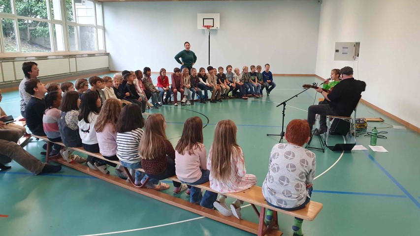 Während einer Woche durften die Schülerinnen und Schüler der PS Schachen mit dem kanadischen Liedermacher Paul O'Brien zusammen musizieren. Die Freude der Kinder an der Musik war spür- und sichtbar. Die Begeisterung war ansteckend. Der einwöchige Workshop wurde mit zwei Konzerten für die Schülerinnen und Schüler und die Eltern abgeschlossen. Die Erinnerungen werden bleibend sein.