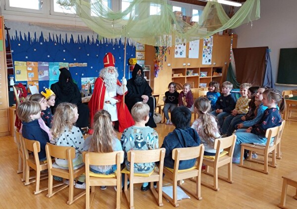 Auch dieses Jahr beglückte der Samichlaus mit seinen beiden Schmutzli unsere Kindergartenklassen sowie die beiden 1. Klassen. Mit grossen Augen und spitzen Ohren folgten die Kinder den wohlwollenden Worten des Samichlaus. Dieser erfreute sich an den schönen Liedern und originellen Versen der Kinder.